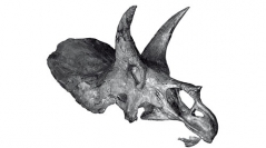 en The skull of Triceratops in the palaeontology gallery, Muséum national d'Histoire naturelle, Paris