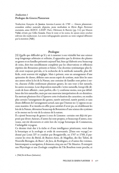 Finally, the reader will also find the first French translation of the Prologue and Introduction of the Genera Plantarum, as well as Jussieu's thesis in medicine of 1770.