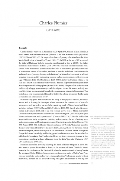 Charles Plumier (1646-1704) and His Drawings of French and Caribbean Fishes