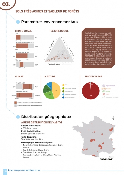 Scientists specialised in microbial ecology from the ‘Agroecology’ mixed research unit of the Bourgogne-Franche-Comté INRA research institute carried out an inventory of the bacterial communities found in French soils. Using state-of-the-art technologies in DNA sequencing, the project led to the publication of this atlas, which presents a detailed overview of these bacterial communities while at the same time calling our attention to their importance for the quality and fertility of soils.