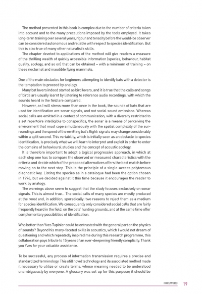 Yves Tupinier, an expert and pioneer on bat sonar, is a life-long friend. His contribution to this book is a precious addition.