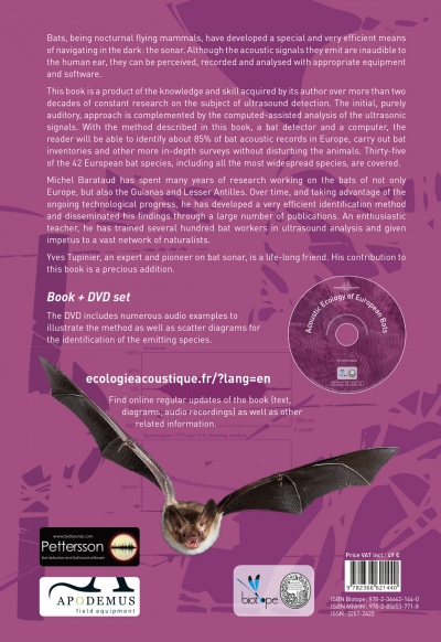 Bats, being nocturnal flying mammals, have developed a special and very efficient means of navigating in the dark: the sonar. Although the acoustic signals they emit are inaudible to the human ear, they can be perceived, recorded and analysed with appropriate equipment and software. This book is a product of the knowledge and skill acquired by its author over more than two decades of constant research on the subject of ultrasound detection. The initial, purely auditory, approach is complemented by the computed-assisted analysis of the ultrasonic signals. With the method described in this book, a bat detector and a computer, the reader will be able to identify about 85% of bat acoustic records in Europe, carry out bat inventories and other more in-depth surveys without disturbing the animals. Thirty-five of the 42 European bat species, including all the most widespread species, are covered. Michel Barataud has spent many years of research working on the bats of not only Europe, but also the Guianas and Lesser Antilles. Over time, and taking advantage of the ongoing technological progress, he has developed a very efficient identification method and disseminated his findings through a large number of publications. An enthusiastic teacher, he has trained several hundred bat workers in ultrasound analysis and given impetus to a vast network of naturalists.