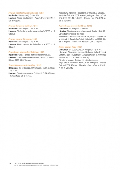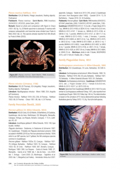 POUPIN J. 2018. — Les Crustacés décapodes des Petites Antilles : Avec de nouvelles observations pour Saint-Martin, la Guadeloupe et la Martinique. Muséum national d'Histoire naturelle, Paris, 264p. (Patrimoines naturels ; 77).
