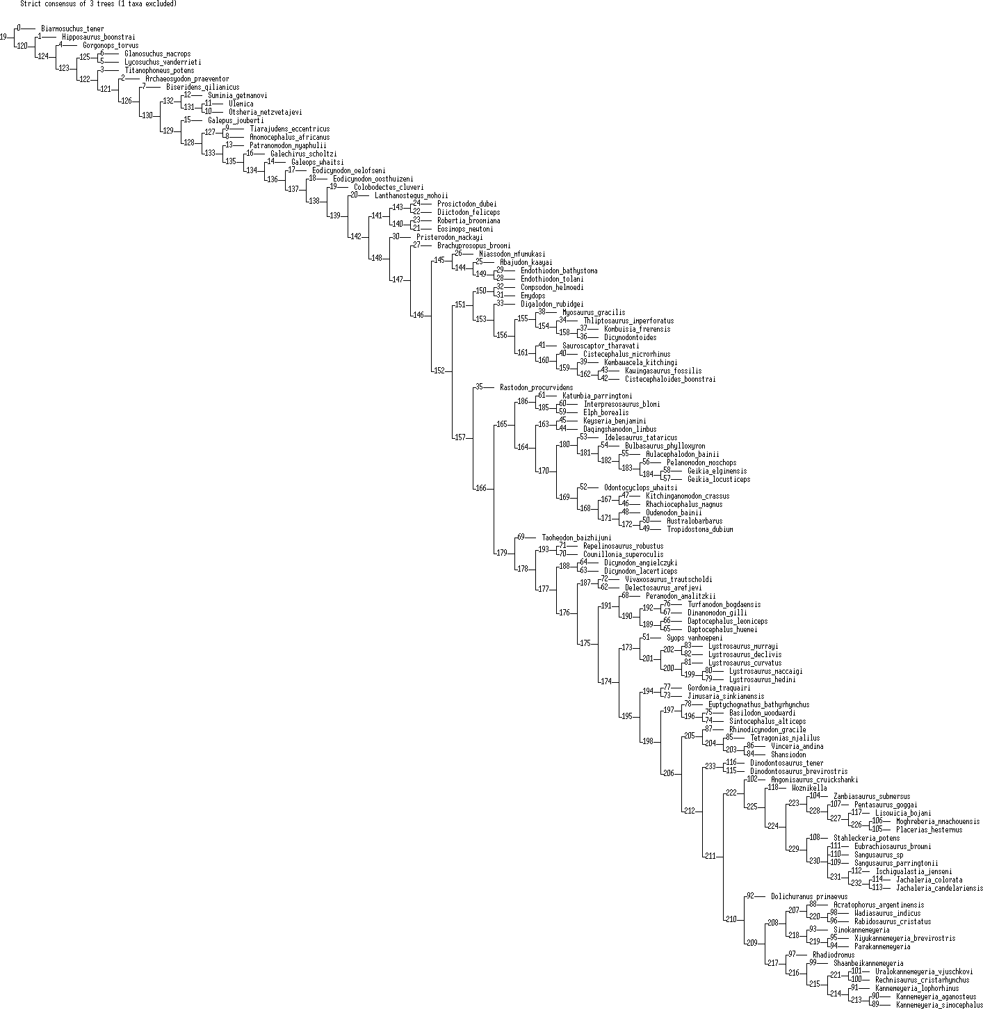 22 (16) - Pages 279-406Despite nearly two centuries of intensive research of dicynodont diversity and distribution, the progress of the last two decades makes the early 21st century a dicynodont renaissance. Here we introduce Woznikella triradiata n. gen., n. sp., a Late Triassic European kannemeyeriiform with stahleckeriid affinities that may represent an early diverging lineage of that family, preceding its split into Placeriinae King, 1988 and Stahleckeriinae Lehman, 1961. Woznikella triradiata n. gen., n. sp. is distinguished from other dicynodonts by its autapomorphic, slender scapula with distinctly expanded dorsal and ventral parts, acromion directed anterodorsally, and inconspicuous scapular spine. Furthermore, we review reported global occurrences of Triassic dicynodonts, including fragmentary, indeterminate finds that may capture cryptic diversity, and analyze the biogeography of the Permian and Triassic Dicynodontia. According to our results, the region of southeastern Africa (Malawi, Mozambique, Namibia, South Africa, Tanzania, Zambia) throughout the Permian and Triassic served as a hotspot of dicynodont diversity and origin point for lineages migrating north and west. Multiple taxa independently migrated to the Americas and Eurasia, indicating open passages between the regions of Southern and Northern Hemisphere. Southern migrations from the Northern Hemisphere appear to be very rare, however.