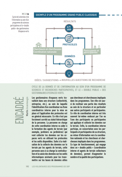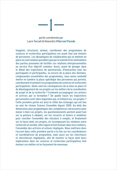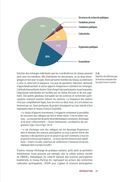C’est de la volonté de partager et essaimer ces réflexions au-delà du réseau qu’est né cet ouvrage collectif. En fonction de son vécu, et de ses liens avec les sciences et recherches participatives, chacun et chacune pourra s’approprier tout ou partie des contenus proposés : retours d’expériences pour accompagner la mise en œuvre des projets, réflexions transversales sur les enjeux des sciences et recherches participatives, ou encore témoignages. Cet ouvrage donnera — nous l’espérons — envie d’approfondir, d’explorer, de se lancer et d’étendre les réflexions et conversations.