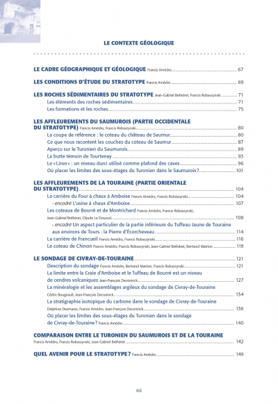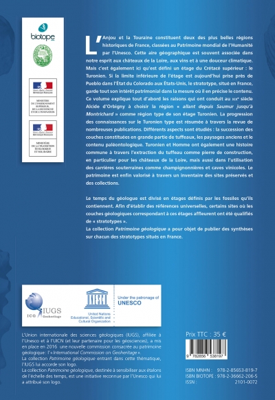 Ce volume explique tout d’abord les raisons qui ont conduit au xixe siècle Alcide d’Orbigny à choisir la région « allant depuis Saumur jusqu’à Montrichard » comme région type de son étage Turonien. La progression des connaissances sur le Turonien type est résumée à travers la revue de nombreuses publications. Différents aspects sont étudiés : la succession des couches constituées en grande partie de tuffeaux, les paysages anciens et le contenu paléontologique. Turonien et Homme ont également une histoire commune à travers l’extraction du tuffeau comme pierre de construction, en particulier pour les châteaux de la Loire, mais aussi dans l’utilisation des carrières souterraines comme champignonnières et caves vinicoles. Le patrimoine est enfin valorisé à travers un inventaire des sites préservés et des collections.
