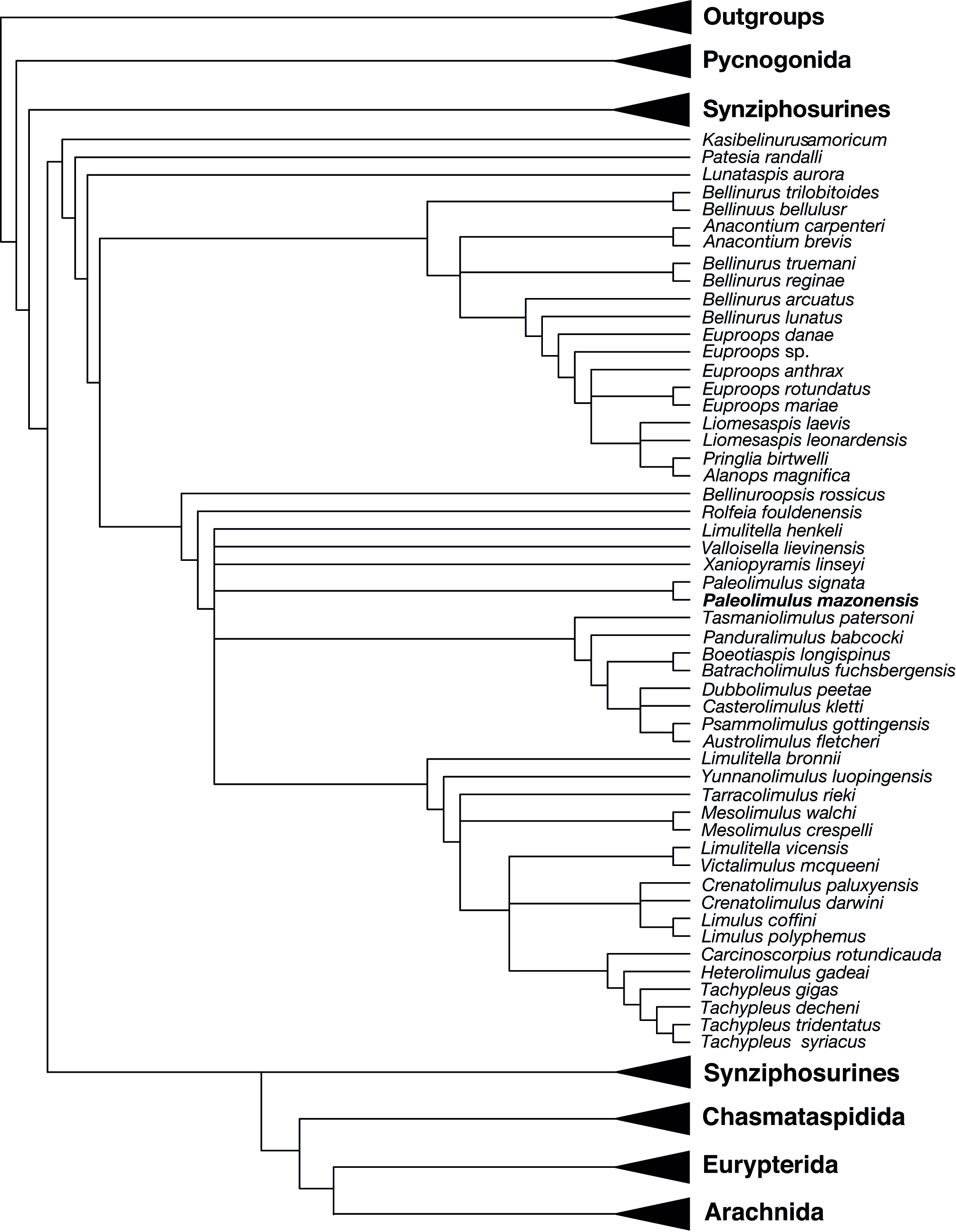 21 (15) - Pages 303-322Les xiphosuridés, aussi appelés limules, incluent des chélicérates actuels dont le registre fossile remonte à l'Ordovicien. Malgré les traces de leur longue histoire évolutive, les xiphosuridés sont rarement préservés dans les assemblages fossiles en raison de leur exosquelette cuticulaire non minéralisé. Cependant, dans des circonstances exceptionnelles, une abondance de spécimens de xiphosurides fossiles a été documentée. Le Konservat-Lagerstätte de Mazon Creek, d'âge Moscovien, représente un tel dépôt de fossiles qui présente une grande abondance et diversité de xiphosuridés. Bien que relativement bien connus, les spécimens de Paleolimulus de Mazon Creek n'ont pas encore fait l'objet d'un examen taxonomique approfondi. A la lumière des efforts récents pour organiser Paleolimulus, nous revisitons ce matériel non décrit, érigeons Paleolimulus mazonensis n. sp., et présentons une analyse phylogénétique qui place P. mazonensis n. sp. comme un taxon frère de P. signata (Beecher, 1904). La paléoécologie et l'ontogenèse possible de P. mazonensis n. sp. sont présentées, ainsi que des perspectives de recherches futures pour mieux comprendre ce genre xiphosuride fossile emblématique.