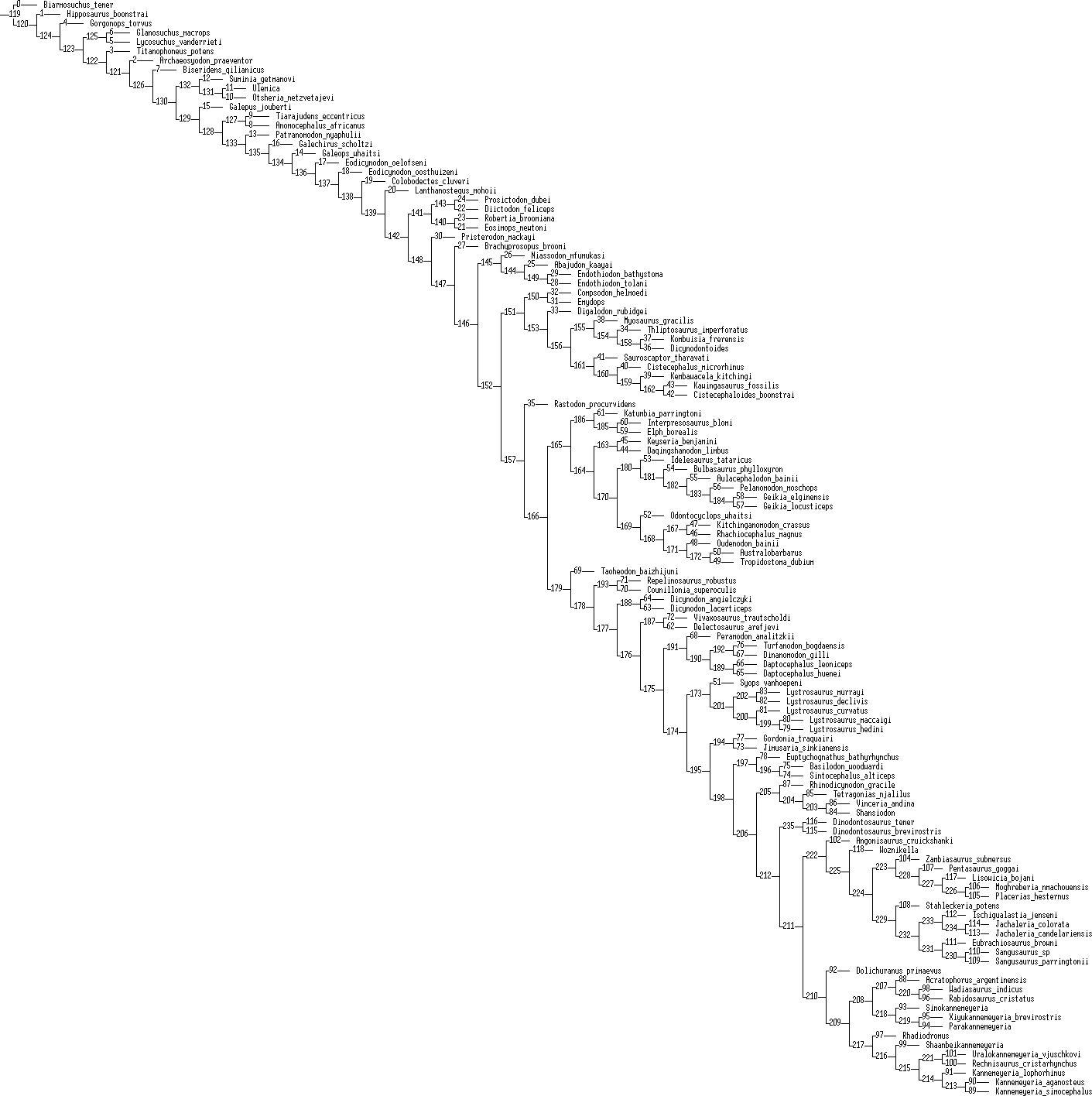22 (16) - Pages 279-406Malgré près de deux siècles de recherches intensives sur la diversité et la distribution des dicynodontes, les progrès des deux dernières décennies font du début du 21e siècle une renaissance des dicynodontes. Nous présentons ici Woznikella triradiata n. gen., n. sp., un kannemeyeriiforme européen du Trias supérieur apparenté aux stahleckeriidés, qui pourrait représenter une lignée divergente précoce de cette famille, précédant sa scission en Placeriinae King, 1988 et Stahleckeriinae Lehman, 1961. Woznikella triradiata n. gen., n. sp. se distingue des autres dicynodontes par sa scapula mince et autapomorphique, avec des parties dorsale et ventrale nettement élargies, un acromion dirigé antérodorsalement et une épine scapulaire peu visible. En outre, nous passons en revue les occurrences mondiales signalées de dicynodontes du Trias, y compris les découvertes fragmentaires et indéterminées qui peuvent capturer la diversité cryptique de ce groupe, et analysons la biogéographie des dicynodontes du Permien et du Trias. Selon nos résultats, la région du sud-est de l’Afrique (Malawi, Mozambique, Namibie, Afrique du Sud, Tanzanie, Zambie), à travers le Permien et le Trias, a servi de point chaud de diversité de dicynodontes et de point d’origine pour les lignées migrant vers le nord et l’ouest. Plusieurs lignées ont migré indépendamment vers les Amériques et l’Eurasie, indiquant des passages ouverts entre les régions de l’hémisphère sud et nord. Les migrations vers le sud depuis l’hémisphère nord semblent cependant très rares.